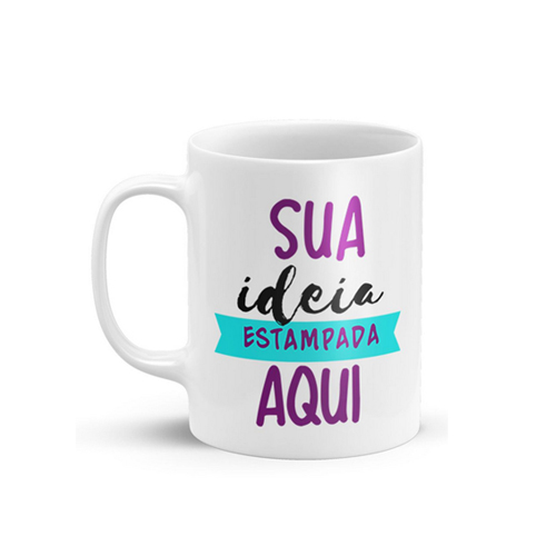 Caneca branca de porcelana 300 ml Tamanho da arte: 9×18 cm
