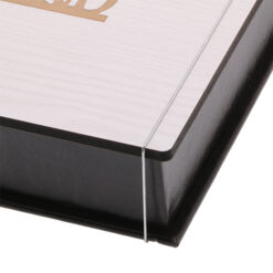 - MDF – Tampa em MDF de 6mm com gravação laser ou impressão UV.